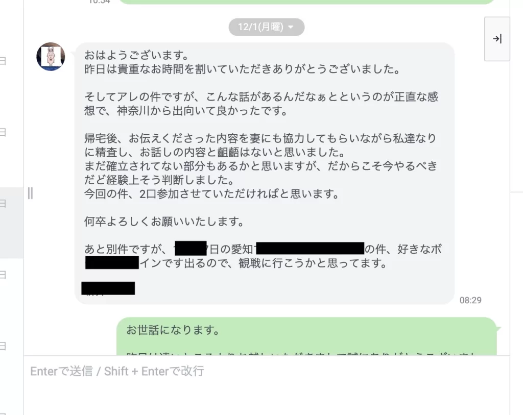 今回紹介してるアレに参加したい方は、2025年12月19日までにUMAのLINE@に意思表示をしてください。 このタイミングを逃しては再度募集はないと思いますのでご理解のほどお願いいたします。