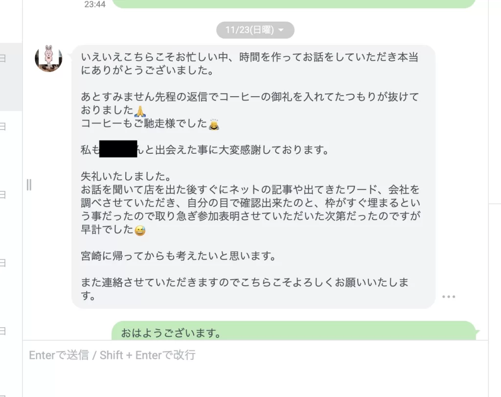 以前当方とお会いされた方の感想です。参考にどうぞ